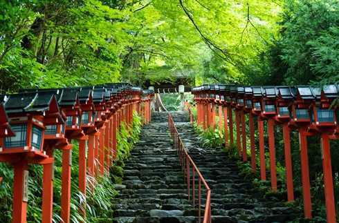 Located near the origin of Kamo River, Kifune Shrine worships Takaokami-no-kami, the god who oversees the supply of water. Records indicate that the shrine’s main hall was rebuilt in 677, making it a very old shrine.
